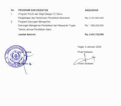 Kepala MAN 1 Tegal Terbitkan Perkin (Perjanjian Kinerja) Tahun 2024